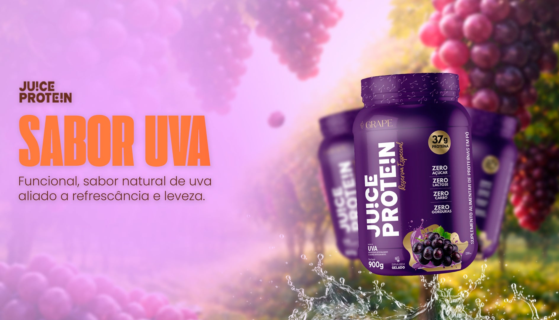 Além de funcional, é delicioso: o sabor natural de uva traz refrescância e leveza, tornando sua suplementação muito mais prazerosa.
